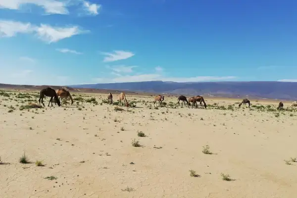 - Balade à dos de dromadaires dans les dunes d’Erg Chegaga.